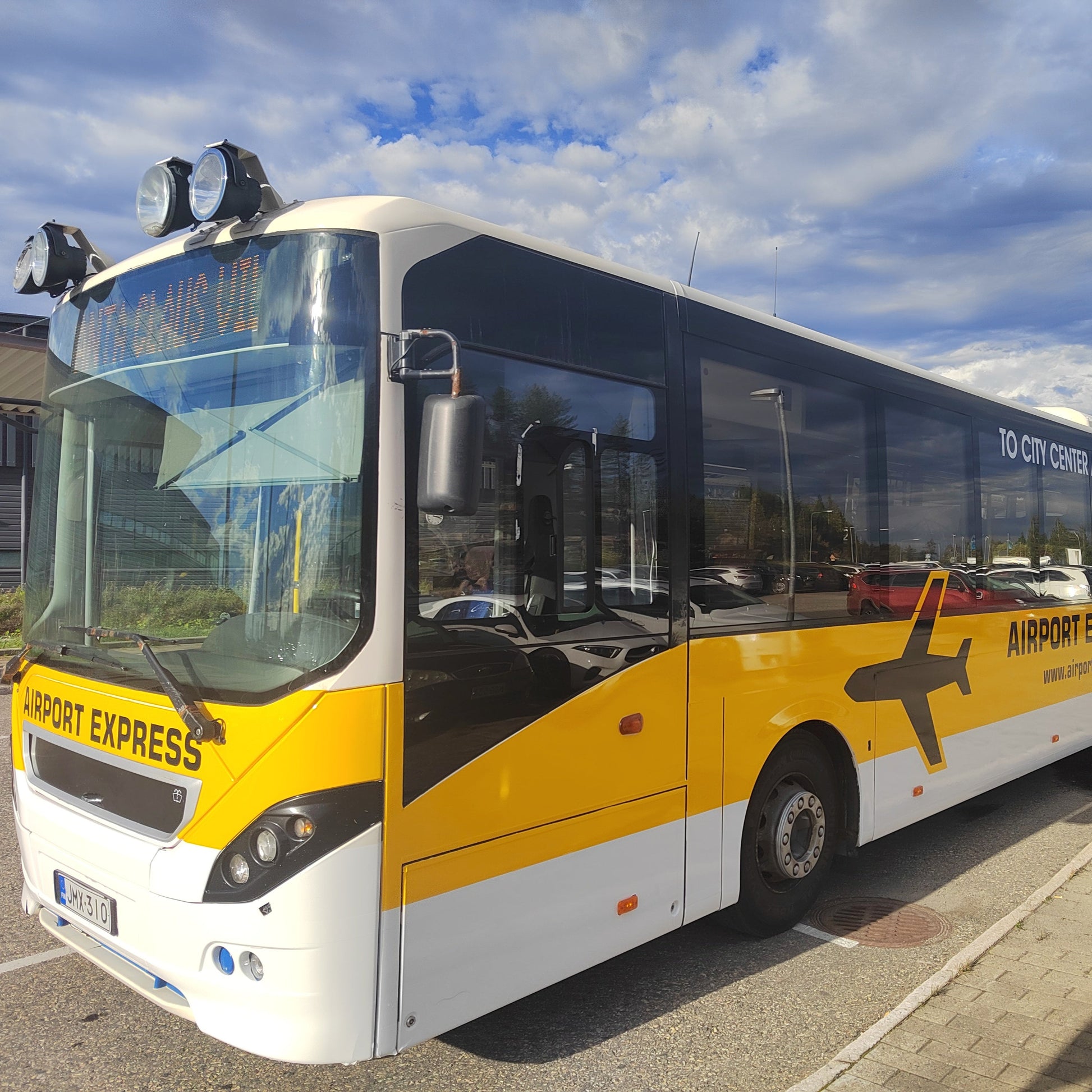 The bus meets arriving planes and runs every 25 minutes between 9:00 and 21:30. The bus does not have a stop-specific schedule.
